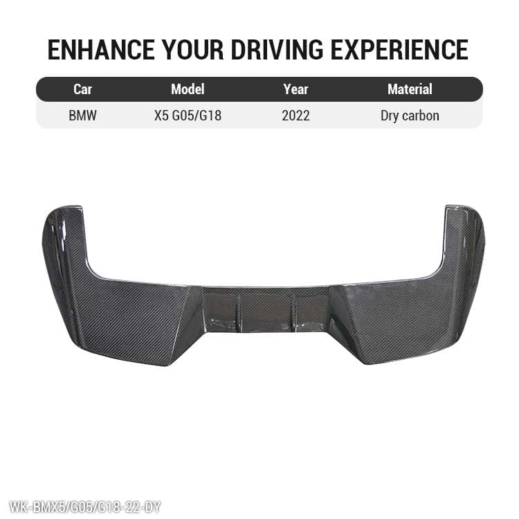 Enhance the performance and visual appeal of your BMW X5 with our precision-engineered G05 Spoiler, crafted from high-grade dry carbon fiber. Designed specifically for the G05 platform, this roof spoiler delivers a perfect OEM fit while significantly reducing weight compared to traditional materials, improving both aerodynamics and efficiency.