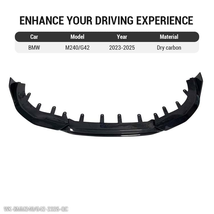 Ready to elevate your product offering with premium dry carbon fiber G42 front lips? Contact our sales team today to request a personalized wholesale quote, discuss custom design options, or schedule a sample shipment. With our competitive pricing, fast lead times, and unbeatable quality, we’re your trusted partner for BMW M240 aftermarket components.